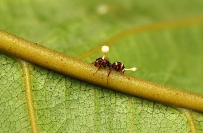 importantly, the zombie ant fungi only utilizes the ant’s body and system for so long as it needs. once the fungi has the vitality of a place to fruit, once the ant has attached securely to the place where it will reproduce, the structures and body of the ant are fully consumed by the fungi.